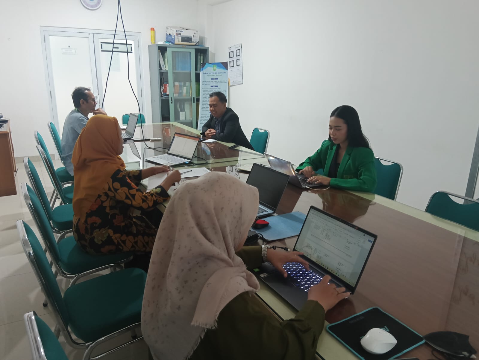 Dari unsur tenaga kependidikan, turut hadir Kepala Tata Usaha, Ernawati, S.E., M.Ak; Staf UPM, Muhammad Nurdin, S.Kom., M.Kom; dan Staf UPM, Muhammad Nuranggiya, S.Kom. Kegiatan ini juga melibatkan dosen Prodi Fisika, yaitu Drs. Ari Mutanto, M.Pd; Febria Anita, S.Si., M.Sc; dan Dra. Diah Widiastuti, M.Kom, serta perwakilan mahasiswa, Kharizta Salsabil dan Nazwa Fatimy Zahra.