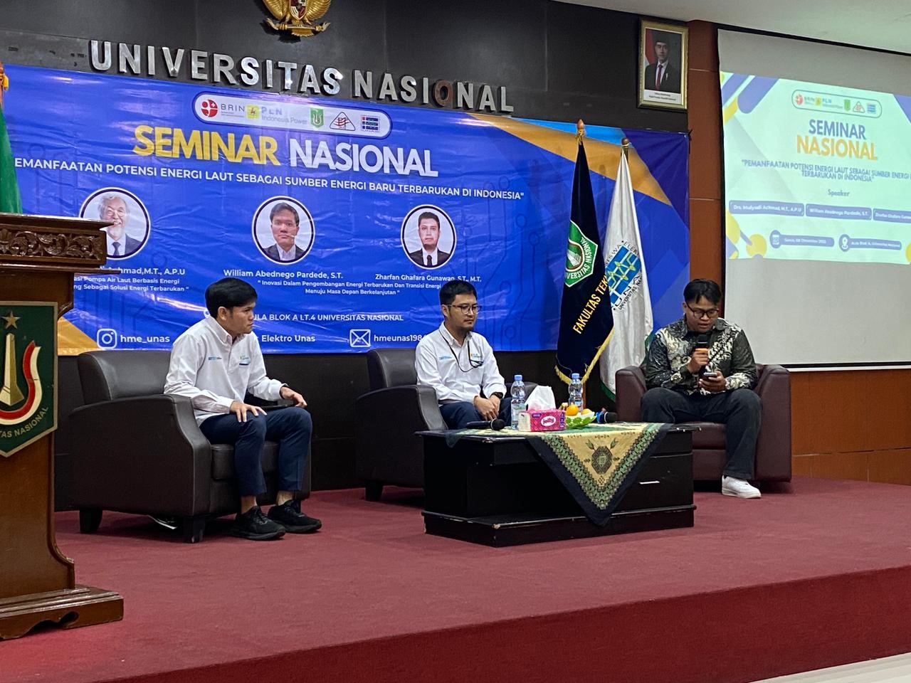 Jakarta (Unas). Himpunan Mahasiswa Teknik Elektro (HME) Fakultas Teknik dan Sains (FTS) Universitas Nasional menggelar Seminar Nasional bertema “Pemanfaatan Potensi Energi Laut sebagai Sumber Energi Baru Terbarukan di Indonesia” pada tanggal 8 Desember 2025. Acara menghadirkan narasumber dari Badan Riset dan Inovasi Nasional (BRIN) serta PT PLN (Persero).