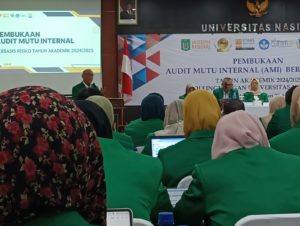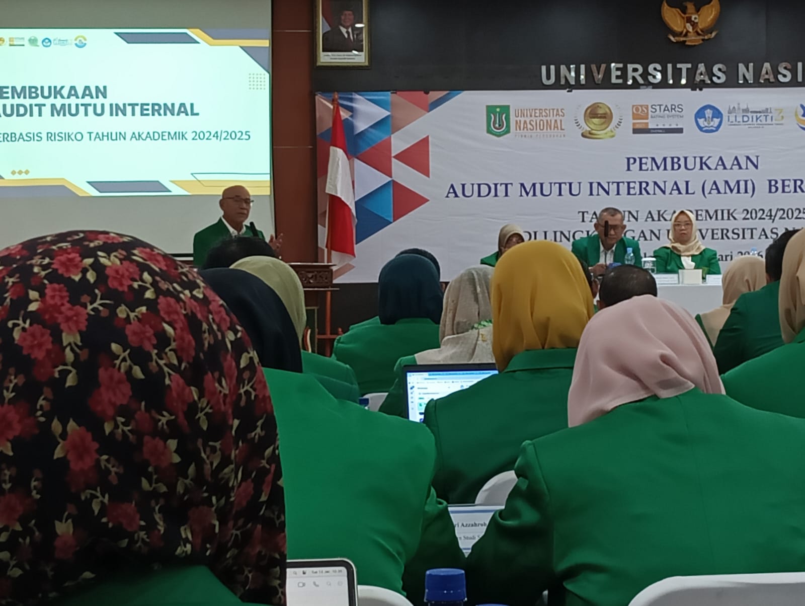 Jakarta, 13 Januari 2026, Universitas Nasional (UNAS) secara resmi membuka pelaksanaan Audit Mutu Internal (AMI) Berbasis Risiko Tahun Akademik 2024/2025. Kegiatan pembukaan diawali dengan menyanyikan lagu Indonesia Raya dan Mars UNAS, serta dilanjutkan dengan apresiasi bagi Auditor Terbaik dan Inovasi SPMI Terbaik sebagai bentuk penghargaan atas komitmen peningkatan mutu berkelanjutan.